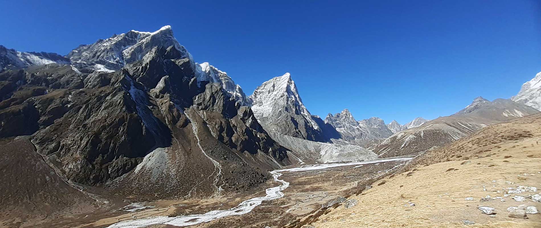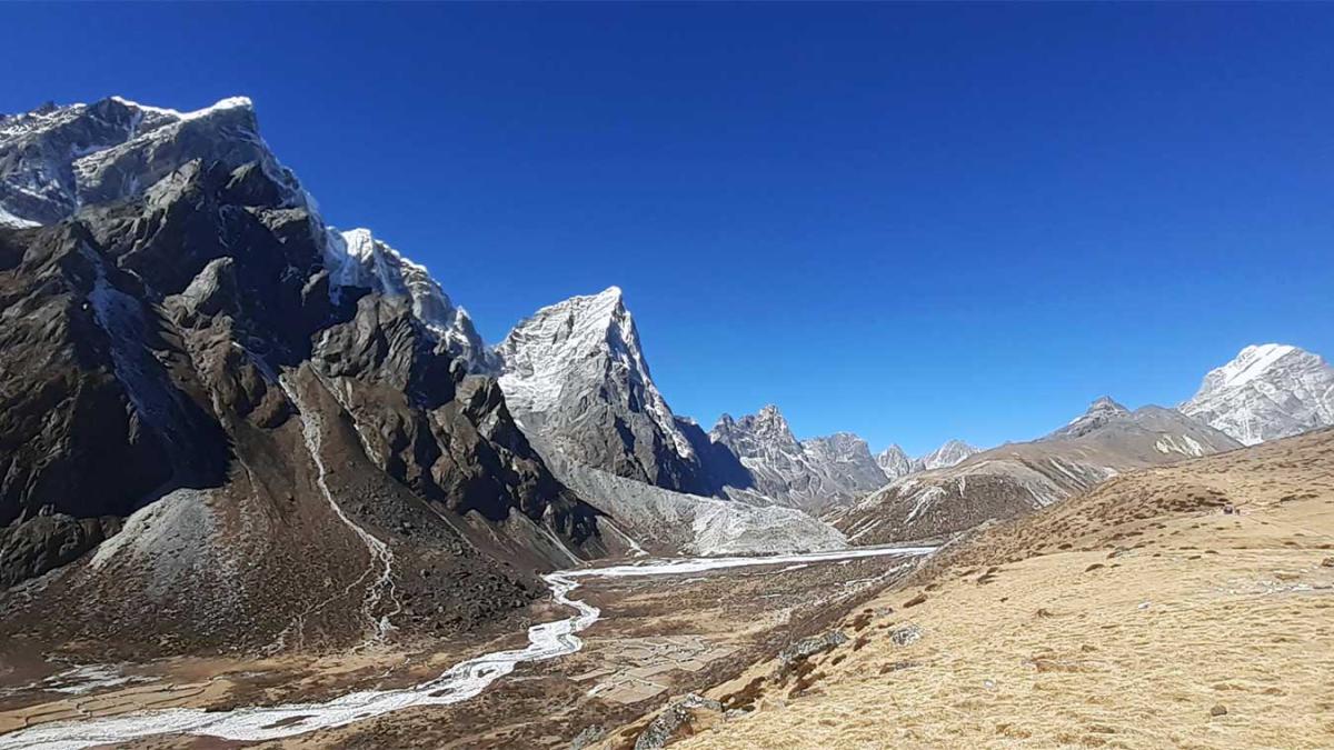 The peaks of Taboche and Everest are one of the highlights of this viewpoint. Later, we will descend to the Gokyo valley, have lunch, and then, descend to the Dole. The descent is much easier than the ascent. While going down the Gokyo, the incredible peaks of Cholatse, Taboche, and Kangtega will keep you engaged with the mountains.