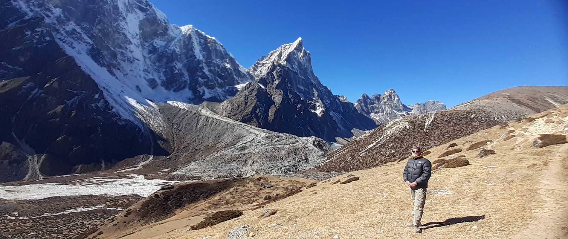 From Dragnag, the trail descends for a while and then ascends to the Ngozumpa glacier, the longest glacier in Nepal. Across the glacier, there is a beautiful valley of Gokyo, where blue lakes rule the hearts of the explorers.