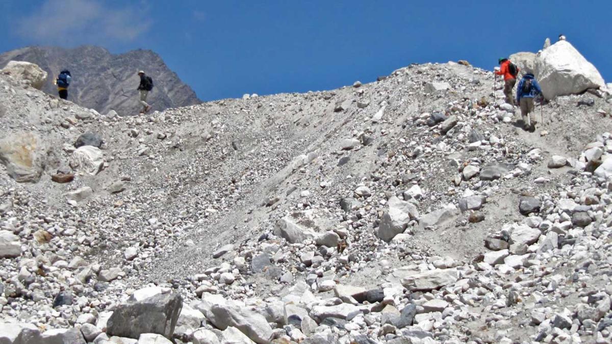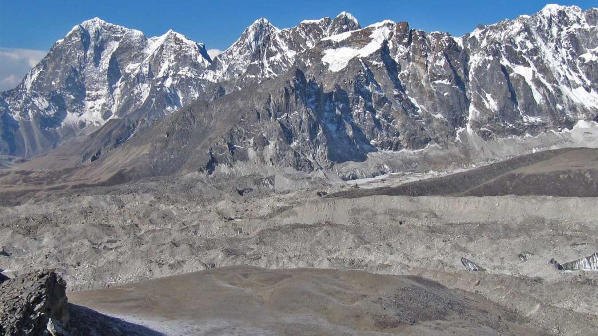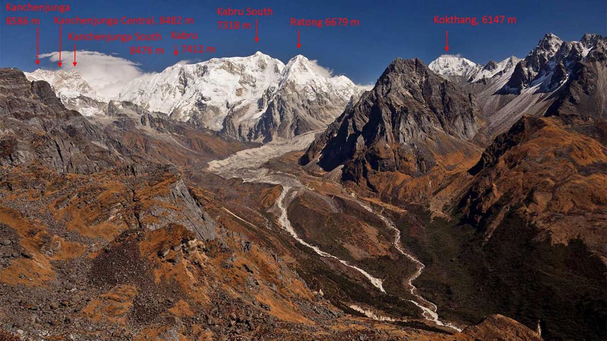 We'll be traveling south from Lhonak today, following the Kanchenjunga Glacier. The path winds across a rugged and challenging area, including moraines and glaciers to traverse. The path gains height as we reach Pang Pema. We will eventually arrive at Pang Pema Base Camp after a long journey. The Pang Pema camping offers spectacular views of the Kanchenjunga mountain as well as surrounding peaks such as Wedge Peak and The Twins. We'll settle her in for the day.