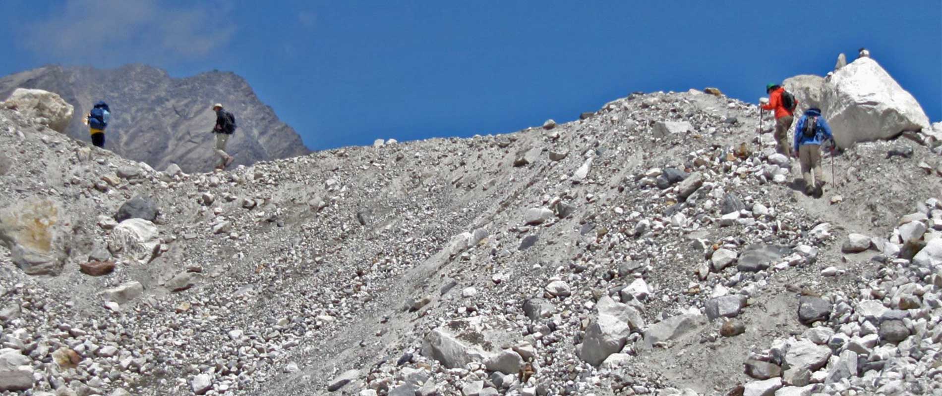 Today's trek mostly takes us over the moraine from the Kanchenjunga Glacier. Walking uphill over enormous stones, we get breathtaking vistas on both sides. As you reach the Lhonak Glacier, the route winds through mountains and rugged terrain. And, because we are in Snow Leopard country, we keep a lookout for this uncommon species as well. After continuing for a while, we will arrive at the village of Lhonak and look for a place to stay.