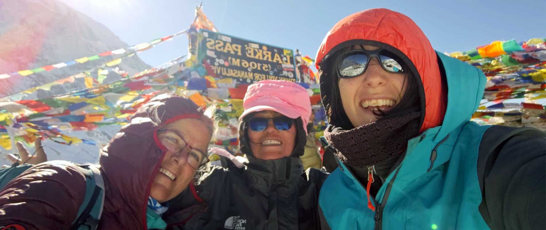 From Larkya Phedi, the trail climbs steeply and sometimes, gradually through a small meadow and gorgeous glaciers on the way. Down the icy lake, the views of the Manaslu Peak, Larkya Himal and some other ranges are truly reminiscing.
