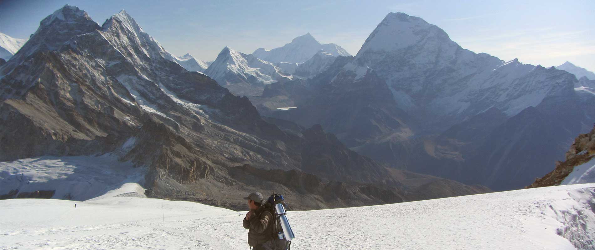 Leaving Khare, you’ll rope up and climb onto the Mera Glacier. A gradual ascent leads to Mera La (5,415 m), from where the trail continues across the broad glacier toward Mera High Camp.