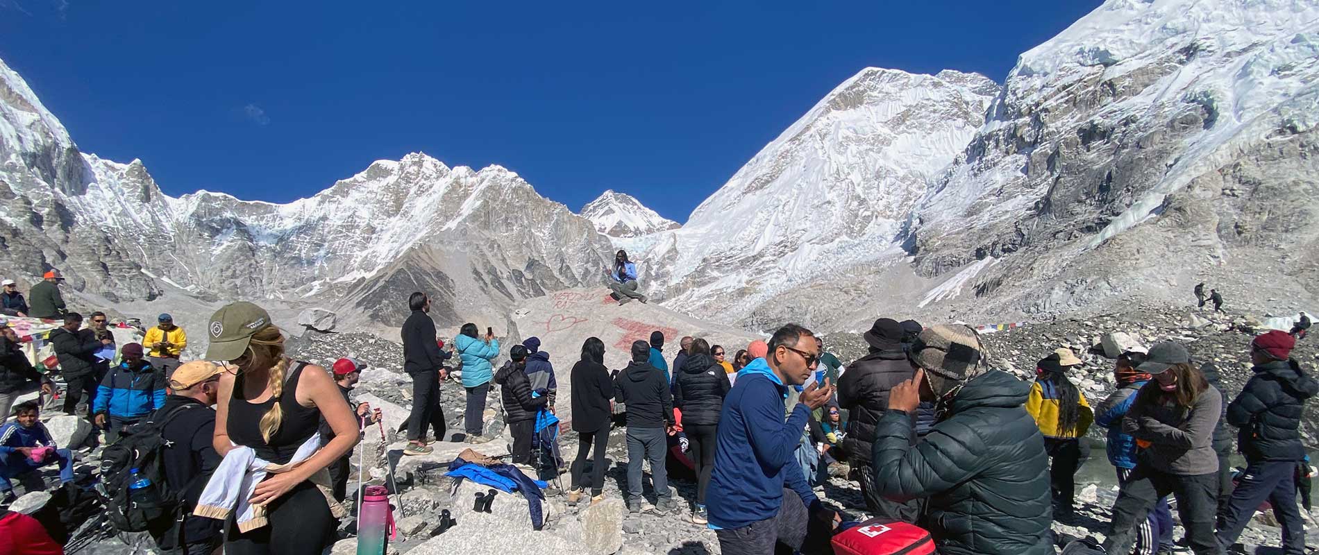 It is an emotional moment, which many times becomes a teary moment. But, it is equally inspiring as well. There are camps, set in the base camp by the climbing team of the Everest. On a clear day, the views of the mountains can be fabulous, but nothing in comparison to being on top of the world.